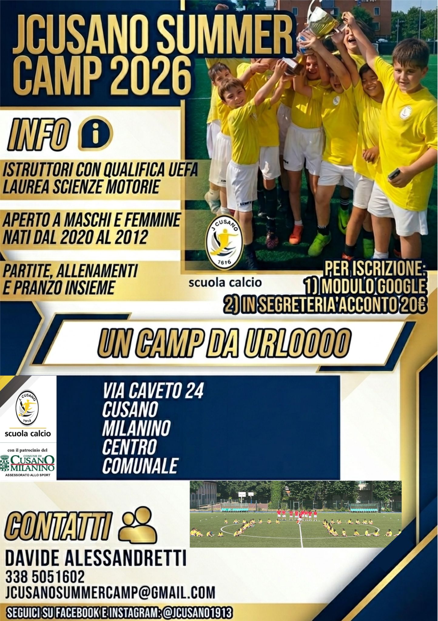 L’Associazione ASD J CUSANO 1913, con il patrocinio dell’Assessorato allo Sport, organizza il camp sportivo “J SUMMER CAMP 2026”, momento di aggregazione giovanile attraverso la pratica sportiva e giochi di gruppo.